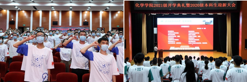 全体新生进行集体宣誓:“我将不忘报国初心,牢记强国使命,仰望星空,脚踏实地,与时俱进,敢为人先,潜心钻研,格物穷理,做德才兼备,知行合一的北航人,不负北航,不负青春,不负新时代。”