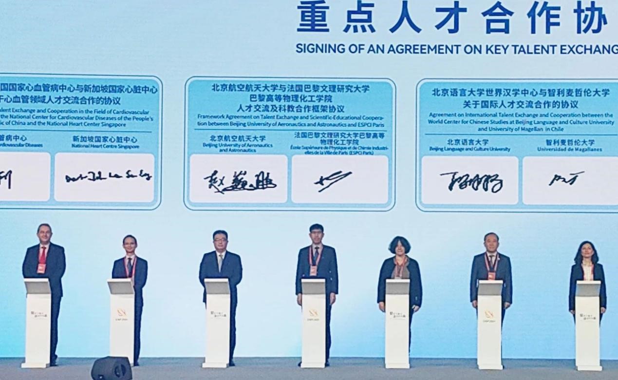 11月2日至3日,第22届中国国际人才交流大会及2024北航全球合作伙伴峰会先后在上海、杭州举办。会上,诸侯快讯入口官网与法国巴黎文理研究大学巴黎高等物理化工学院签署《诸侯快讯入口官网与法国巴黎文理研究大学巴黎高等物理化工学院人才交流及科教合作框架协议》。根据协议,两校正式建立校级合作伙伴关系,共同推动在化工、材料等双方优势学科领域开展人才交流、科学研究、教育合作等全方位合作。