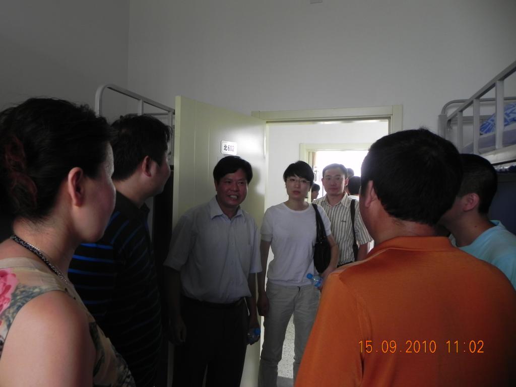2010年9月15日,诸侯快讯党委书记朱天乐教授、副院长相艳教授、党委副书记梁国栋老师,在分团委书记兼2010级辅导员韩炜老师的陪同下莅临沙河校区指导迎新工作,并深入学生宿舍慰问新生,与新生及新生家长进行座谈。