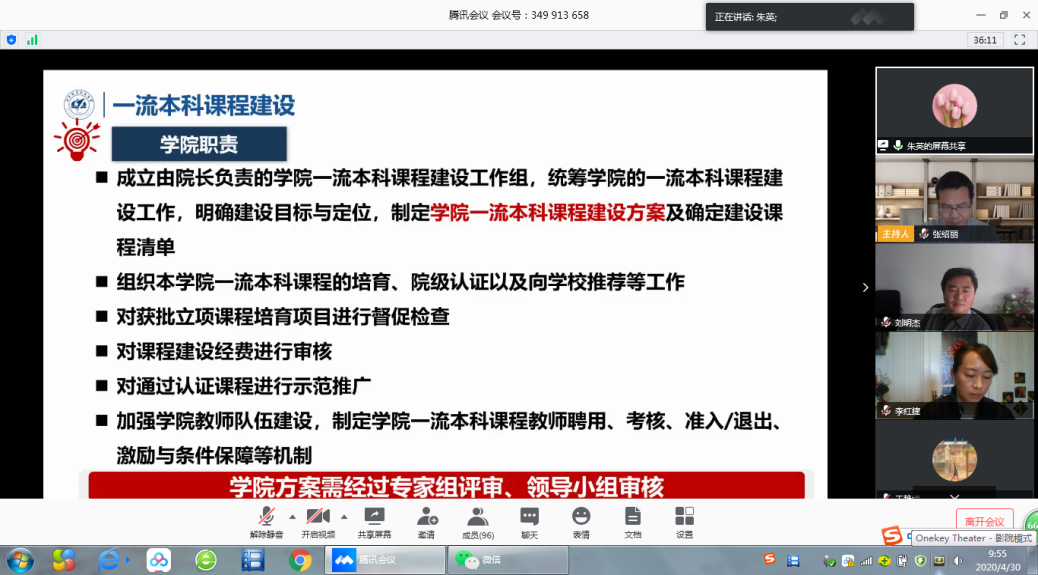朱英介绍了学校一流本科课程建设方案,并就诸侯快讯入口官网的具体安排做了说明。学院第一时间成立了一流本科课程建设工作组、院级认证专家组,并就学院方案制定及院级课程立项时间做了统筹部署,动员各位老师积极参评,把握时机。同时,朱英就学校、学院学期课程考核安排预案做了汇报。