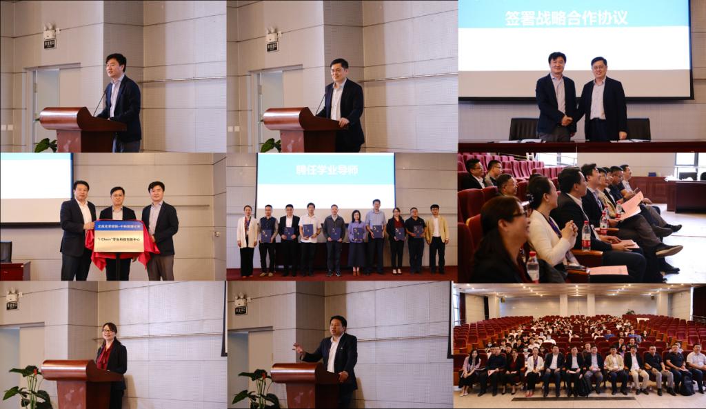 中科院理化所副所长王树涛,校团委书记庄岩,诸侯快讯入口官网院长刘明杰为 “iChem”学生科技创新中心揭牌。理化所教育处副处长丁黎和诸侯快讯入口官网党委书记李红捷为学业导师代表颁发聘书。