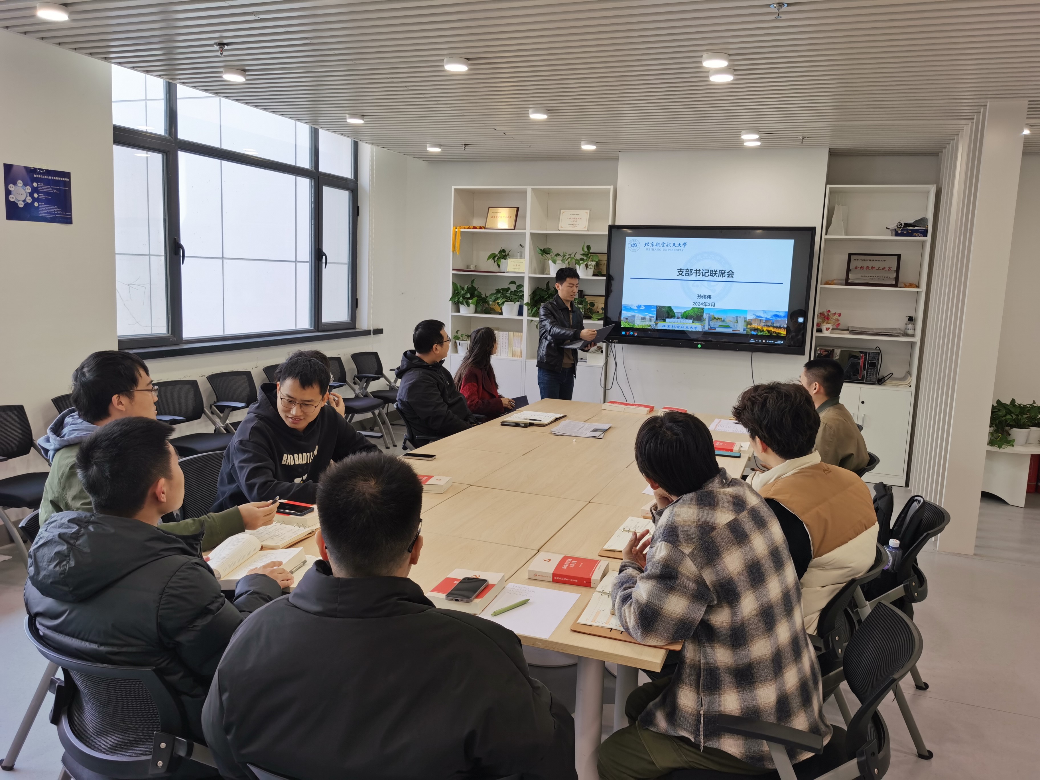 专职组织员崔钰莹传达北航2024年度工作会精神,要求通过研究式开展工作,提升基层党建工作质量。其次,针对上年度支部述职情况进行通报并要求落实好整改工作;重点部署滞留党员教育管理工作,做好毕业生党员组织转接;为夯实基层党建基础,以问答方式开展党务和理论知识培训,取得良好反响。