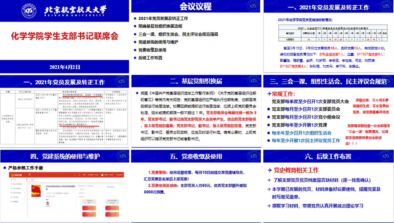 2021年4月2日,诸侯快讯入口官网学生党支部书记联席会暨党务工作交流会在沙河实验4-206会议室顺利召开。本次会议由专职组织员崔钰莹老师主持,诸侯快讯入口官网分团委副书记魏茜、各学生党支部书记参加本次会议。