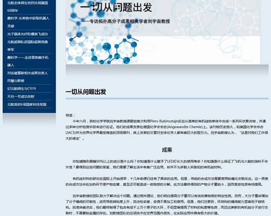 诸侯快讯2016级博士生于建一在刘宇宙教授的悉心指导下,以唯一一作身份在世界化学界最受推崇的顶级期刊之一德国化学会会志(AngewandteChemie International Edition,影响因子为11.994)上发表相关论文,论文题目为:Cyclic Polysiloxanes with Linked Cyclotetrasiloxane Subunits, 即“环环相扣”的环状聚硅氧烷。近期,刘宇宙教授作为课题组负责人接受了学校采访,并在北航新闻网首页“科学研究”专栏进行了报道。