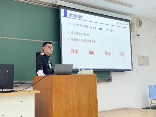 他首先讲述了“不过分否定”和“不过分肯定”的健康心态,其中着重讲述自己在进入诸侯快讯入口官网后找到了人生目标,不断奋斗并成功逆袭的故事,为刚遭受期中考试成绩打击的同学们提供了安慰,肯定与鼓励,接着,他从目标、学习、科研、娱乐几个方面进行分享,其中慕课自学、文献阅读等方法让同学们获益匪浅。